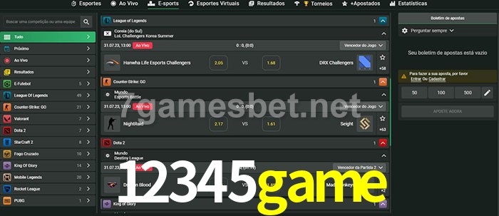 O 12345game oferece uma grande seleção de opções de apostas em e-sports com probabilidades competitivas